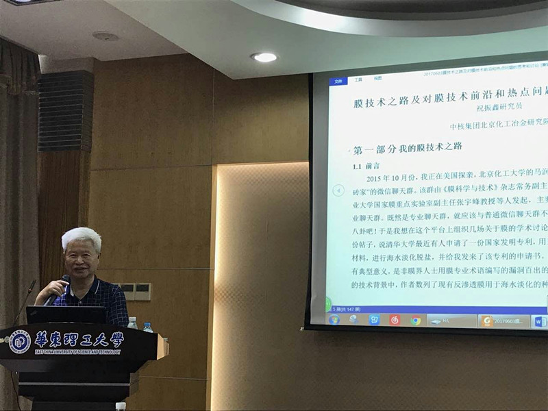 6月9日上午,中核集团北京化工冶金研究所祝振鑫研究员应邀来校访问,并在实验十六楼110室作了题为:“膜技术之路及对膜技术前沿和热点问题的思考和讨论”的学术报告。报告会由化学工程研究所所长许振良教授主持,浙江大学宁波理工蜜桃视频