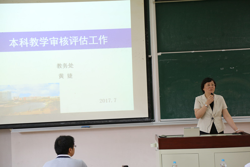 会上,黄婕首先介绍了审核评估的背景,表示,此次审核评估不同于以往的评估,要求我们采取发展模式,“用自己的尺子量自己”。她详细讲解了审核评估的背景和六大要素,从学校迎评工作、管办评分离、成立校级质量评估中心以及蜜桃视频
