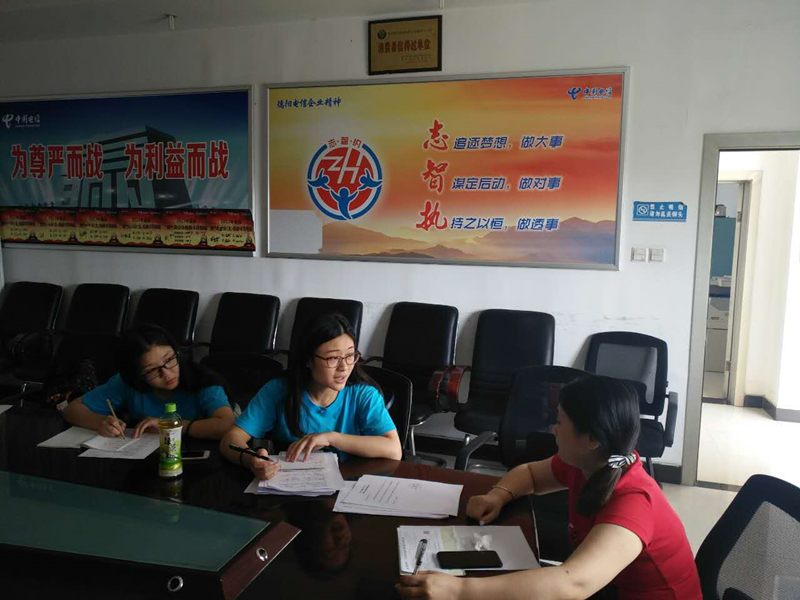 7月21日,团队来到重庆,拜访渝中区电信分公司对当地“互联网+教育”情况进行调查,并在当地通讯营业厅分发了调研问卷。