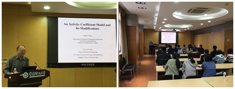 建校67周年之际,10月25日上午,应化工热力学教研室的邀请,著名的国际化工热力学专家,Peng-Robinson状态方程的提出者,加拿大工程院院士,萨斯喀彻温大学(University of Saskatchewan)教授彭定宇先生在实验十六楼108室为蜜桃视频-麻豆蜜桃-蜜桃直播