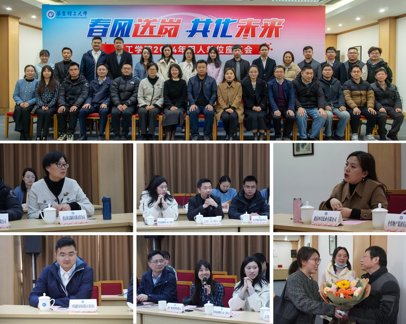 人才培养质量给予了充分肯定,并结合单位用人情况、围绕高质量人才培养畅所欲言、献计献策,对华理优秀学子求贤若渴。座谈会后还出现了不期而遇的温馨场面,作为企业代表的两位校友专程为自己在校时的老师送上了鲜花,表达了对母校老师最真挚的祝福。