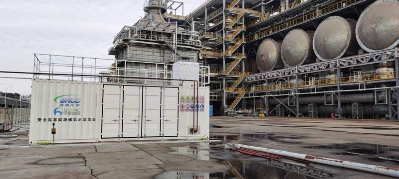 图片说明:团队成员在调试安全氢基能源储氢示范装置